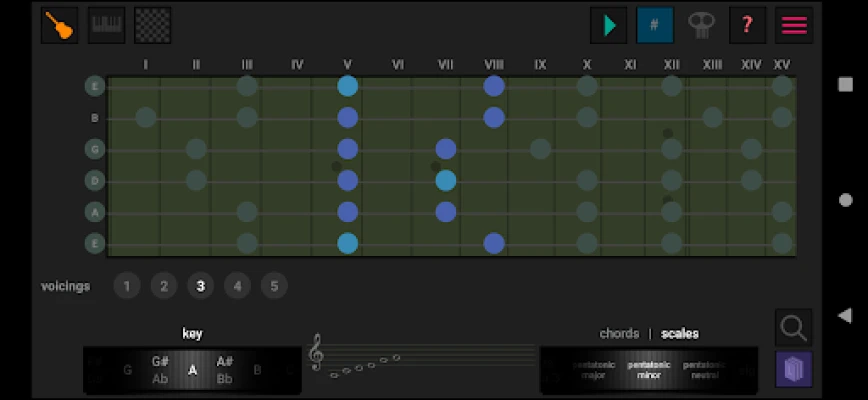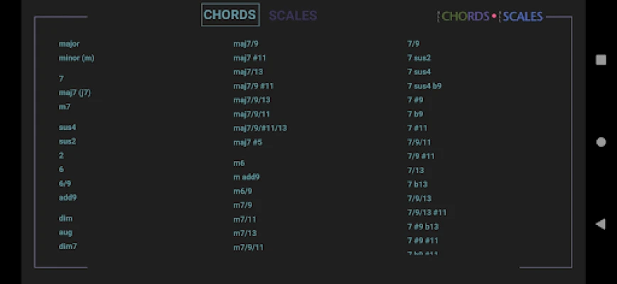 Ultimate library of chords, scales, voicings and arpeggios from numerous genres in all keys, as well as an identification-tool for simple and complex positions or fingerings. Display for guitar and piano as well as a matrix.