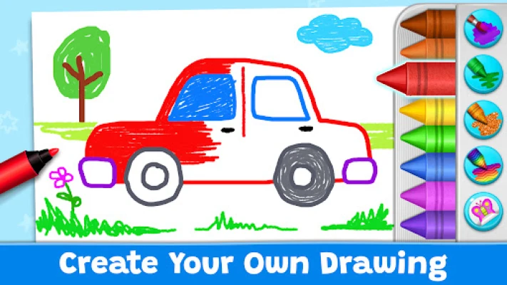 Coloring Games was built specifically for children. It has an easy to understand interface kids as young as one year old can use. They'll have fun using the drawing, painting, and learning games at their disposal, while parents can watch the looks of joy on their faces as they color in the pages with a wide variety of paints.
