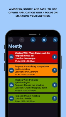 Meetly is a lightweight, easy-to-use app designed to help you stay on top of your meetings—without relying on the internet. Meetly lets you create, organize, and track all of your meetings in one place. It’s perfect for users who want a simple, distraction-free experience.