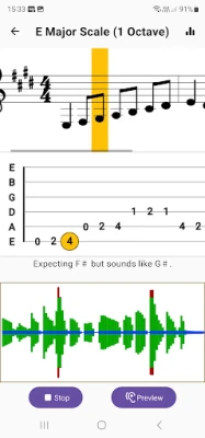 For testing yourself, there is the TestMe section which picks a scale from your syllabus, and listens to your playing offering a score for each scale when you're finished.