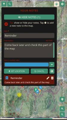 -- Your personal explorer's log: Add an unlimited number of your own notes to the map. Mark ideal parkour routes, stashes with supplies, dangerous Bandit camps. Each marker can have a unique name, a detailed description, and a color for maximum convenience. Edit them on the fly and hide or show all notes with one button.