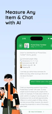 Take a photo of any item and the advanced AI system analyzes the image to estimate weight and dimensions instantly. Results appear within seconds and include confidence scores for accuracy.