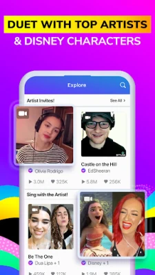 - Duet with Stars: Sing alongside Ed Sheeran, Dua Lipa, Olivia Rodrigo, Disney characters & more! Feel like you're in the studio with your favorite stars