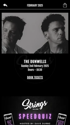 Opened in 2017, Strings Bar & Venue is a 300 capacity live music and performing arts venue situated in Newport, at the heart of the Isle of Wight, an iconic geographical location within popular music history. Founded and run by musicians for music lovers, Strings has established itself as the Island's premier live venue, hosting a wide variety of bands, DJ's and comedians.