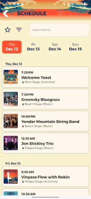This event experience extends beyond the stage with a variety of artist interactions that create the ultimate experience for bluegrass fans and avid vacationers alike. The intimate event has cultivated a close-knit community of returning guests, first time attendees, artists, and staff who come together to participate in instrument workshops, poolside games, beachfront picking sessions, and theme nights.
